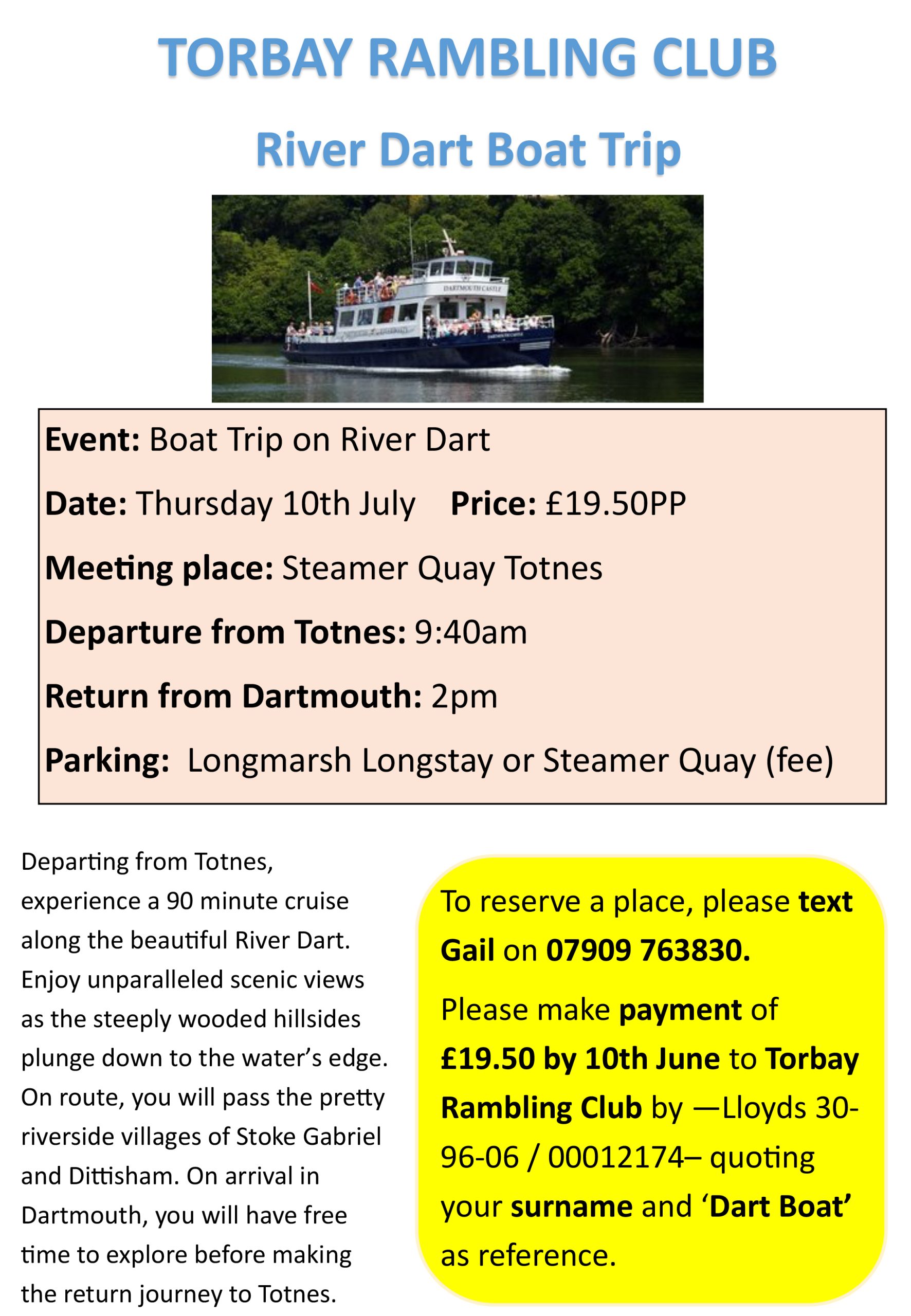 River Dart Boat Trip – 10th July – 31 members had a lovely day